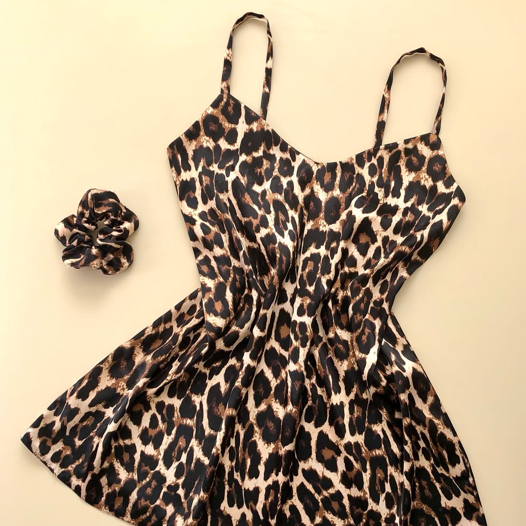 پیراهن طرح پلنگی جنس کار ساتن الیکس هستش و به همین دلیل خیلی نرم و لطیف جنسش درجه یکِ و کمی کشسانی داره.
